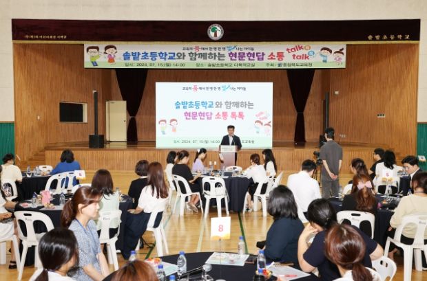 큰학교 교육가족과 함게하는 현문현답 소통간담회는 지난 6월 19일 창리초등학교를 시작으로 ▲7월 5일 충주남한강초등학교 ▲8일 중앙초등학교에서 진행했으며, 이날 솔밭초등학교가 마지막이었다.