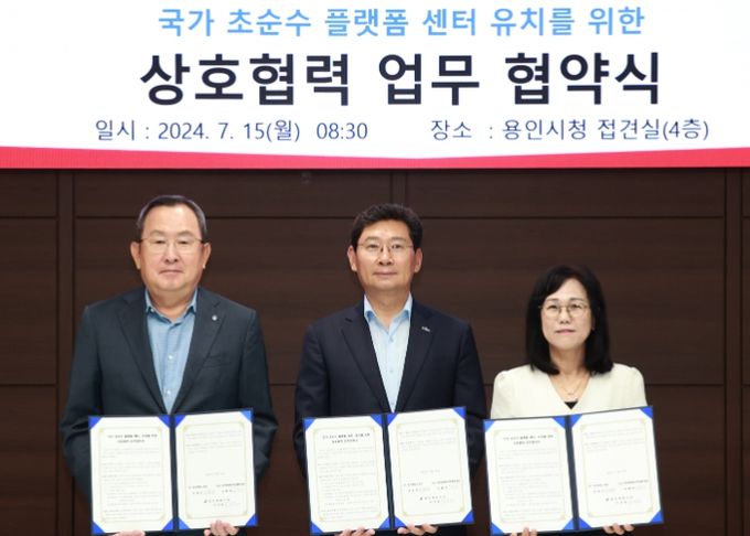 (아름다운교육신문) 용인특례시는 15일 반도체 생산에 필수 물질인 초순수를 연구할 ‘국가 초순수 플랫폼센터’를 유치하기 위해 명지대학교, 경기환경에너지진흥원과 공동 대응을 위한 상호협력 업무협약을 체결했다고 밝혔다.