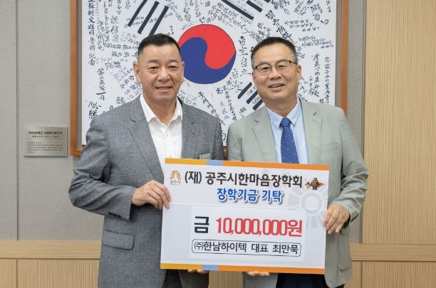 (아름다운교육신문) ㈜한남하이텍이 지역인재 육성을 위해 사용해 달라며 장학금 1000만원을 공주시에 기탁했다.