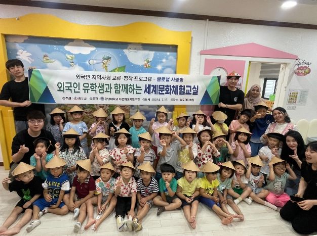 이번 세계문화체험교실은 ‘24년 지방소멸대응기금 투자사업으로 추진되고 있는'외국인 지역사회 교류정착 프로그램'일환이며, 글로벌 시대에 발맞춰 외국인 유학생들이 지역 어린이들과 음악, 놀이, 만들기 등을 함께하면서 다양한 세계 문화체험 기회를 제공하는 동시에 외국인 유학생들이 지역의 보육환경에 대한 이해도를 높이는 시간을 가졌다.