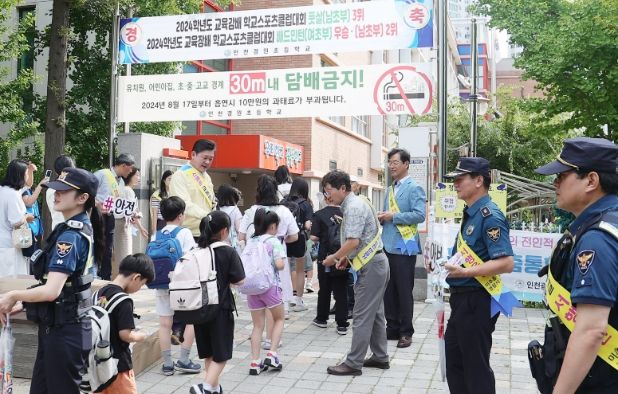 (아름다운교육신문) 천 미추홀구는 16일 경원초등학교 정·후문 진출입로에서 안전한 어린이 보호 구역 보행환경 조성을 위한 관계기관 합동 현장 교통안전 캠페인을 진행했다.