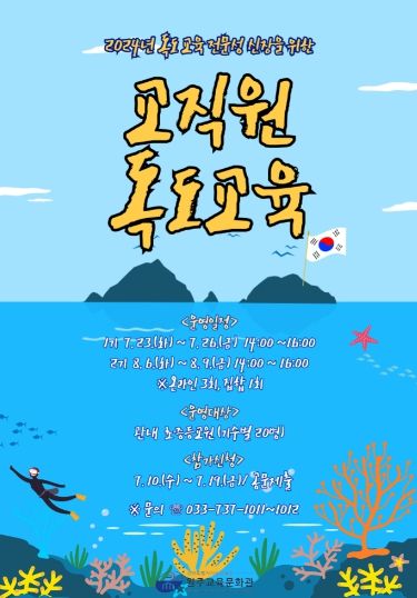 (아름다운교육신문) 원주교육문화관(관장 유선종)이 7월 23일부터 관내 초·중등 교원을 대상으로 독도교육 전문성 신장을 위한 독도교육 역량강화 프로그램을 운영한다.