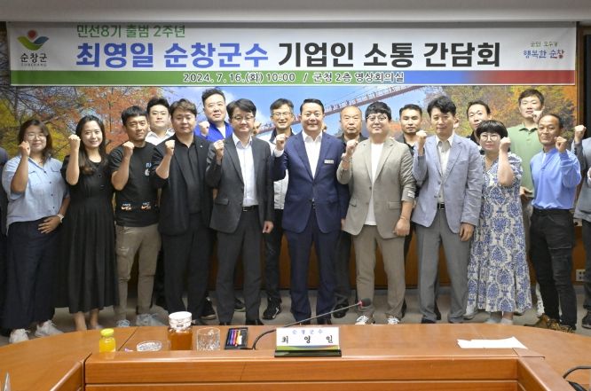(아름다운교육신문) 최영일 순창군수가 민선 8기 출범 2주년을 맞아 16일 군청 2층 영상회의실에서 관내 기업인과 소통 간담회를 열고, 기업 하기 좋은 순창 만들기에 나섰다.