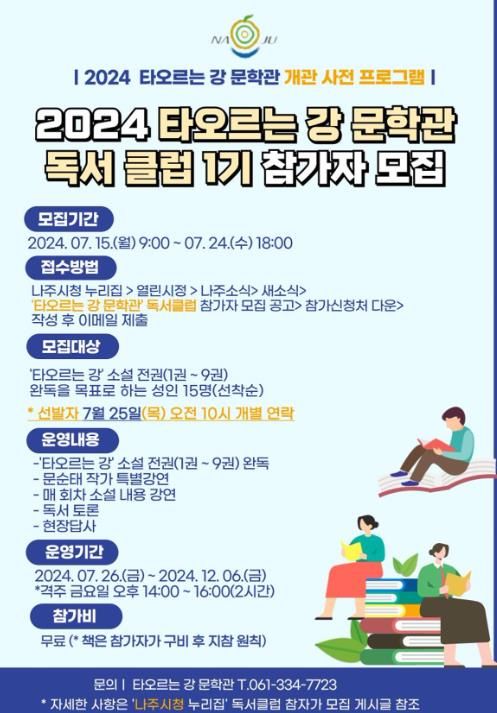 윤병태 나주시장은 “타오르는 강 문학관 개관 사전 프로그램으로 마련한 독서 클럽을 통해 시민의 문학적 소양 함양과 지역 문학 자산의 가치를 공유할 수 있는 기회가 되길 바란다”고 전했다.