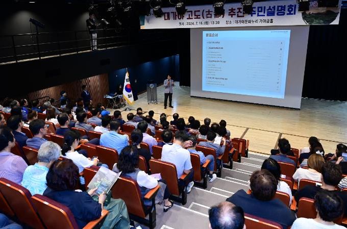 이번 주민설명회는 고령 대가야 고도(古都)로 지정된 이후 중장기 계획 수립 학술용역의 일환으로 수행업체인 재단법인 역사문화환경정책연구원 조홍석 원장이 고도보존육성제도의 이해, 고도보존육성사업(주민지원사업, 주거환경 개선사업, 주민기반시설 개선사업, 주민교육사업 등)의 주요성과, 대가야 고도 추진방향에 대해 설명하였으며, 고도 지정에 따른 질의 및 응답, 주민 건의사항 청취 등의 순으로 실시하였다.