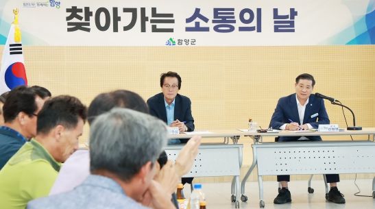 ‘찾아가는 소통의 날’은 7월과 8월 두 달간 진행될 예정으로 진병영 함양군수의 군정 철학 중 하나인 ‘소통하는 공정행정’의 실천과 함께 지방소멸 위기 극복을 위한 군민들의 적극적인 협조를 구하는 의미 있는 시간이 될 것으로 기대된다.