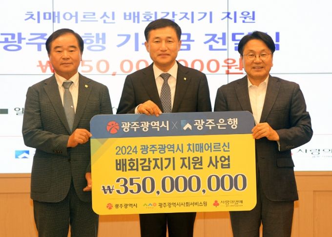 기부금은 광주사회서비스원을 통해 치매어르신을 위한 배회감지기 3065개를 보급하는데 쓰일 예정이다. 광주은행은 지난해에도 치매어르신 배회감지기 지원을 위해 9000만원을 기부했다.