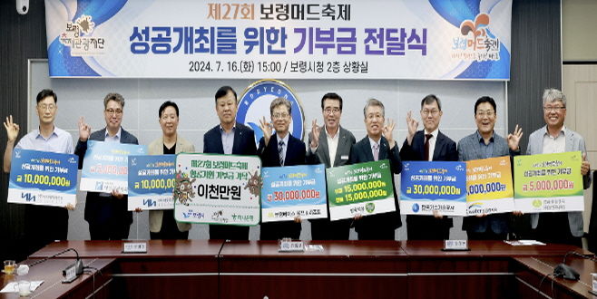 (아름다운교육신문) 보령시는 지난 16일 상황실에서 제27회 보령머드축제 성공개최를 위한 기부금 전달식을 가졌다.
