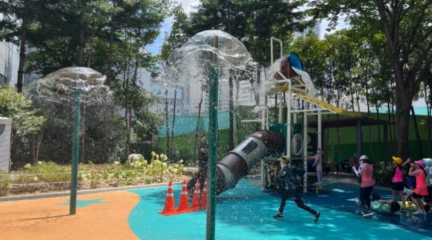 5개 공원에는 바닥분수, 물놀이 조합 놀이대, 쿨링포그, 워터터널, 워터아치 등 다양한 물놀이시설이 기설치되어 여름철 무더위를 피할 수 있는 도심 속 공원 으로 탈바꿈했다.