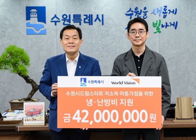 월드비전 경기남부사업본부 최성호 본부장은 16일 수원시청을 방문해 이재준 수원시장에게 ‘월드비전 냉·난방비 지원사업’ 지원금을 전달했다.
