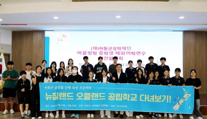 하동군장학재단은 2015년부터 해외문화 체험을 진행하고 있으며, 그중 중학생은 올해부터 해외어학연수로 변경하여 시행할 방침이다.