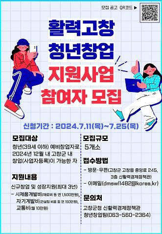 (아름다운교육신문) 고창군은 17일 ‘활력고창 청년창업 지원사업’ 참가자를 모집한다고 밝혔다.