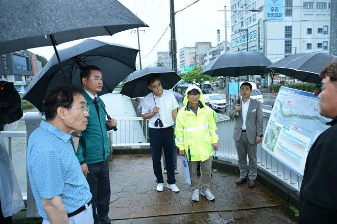 고현천 상류부 하천재해예방사업 현장소장에게 사업추진 현황을 보고 받은 박 시장은 지역민들의 인명과 재산을 보호하기 위한 조속한 사업 추진과 꼼꼼한 시공을 당부했다.