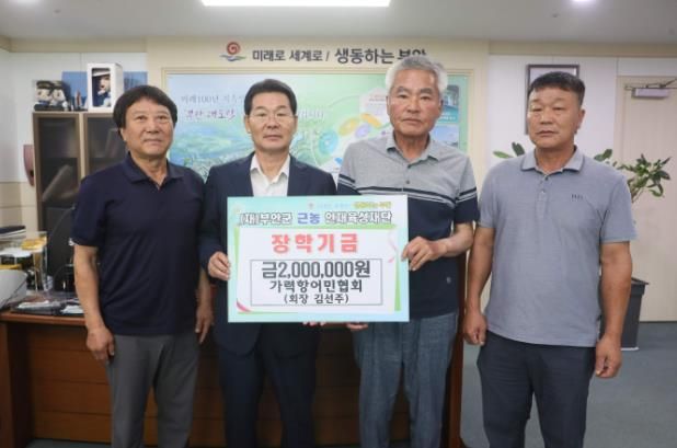 (아름다운교육신문) 부안군 가력항어민협회은 지난 16일 부안군 근농인재육성재단을 방문하여 지역 인재육성을 위한 장학금 200만원을 기탁했다.