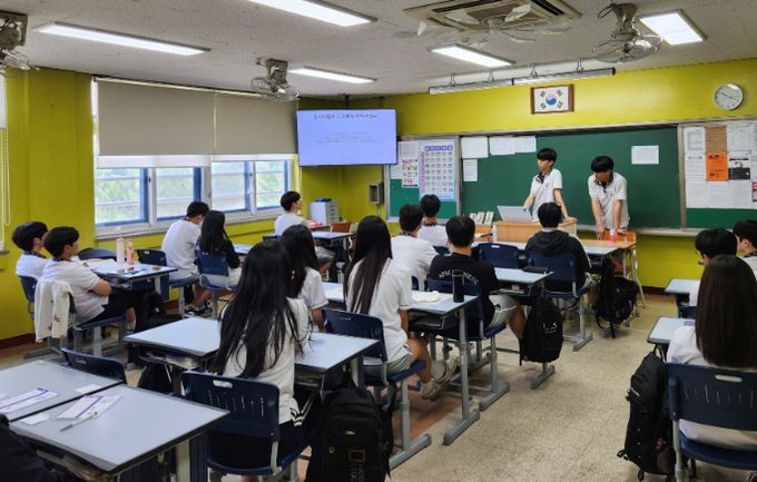 첫째 날 진행된 학생 주도 교육과정 박람회는 3학년 선배인 교육과정 리더들이 직접 기획하고 준비한 교과별 설명회를 통해 내년도 선택 과목에 대한 안내를 들을 수 있도록 운영됐다. 또한 갤러리 워크 방식으로 자유롭게 교과 자료를 열람하고, 수업을 미리 들어본 선배들에게 편하게 궁금한 점을 물어보면서 학생들 간 상호 학습이 이루어졌다.