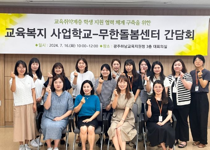 이번 간담회에서는 교육복지사 7명, 광주시 남부·북부 무한돌봄행복나눔센터 사례관리사 10명이 참여했으며 『교육취약계층 학생 지원을 위한 협력체계 구축』을 목표로 각 기관의 사업 및 역할 이해를 위한 담당자간 소통의 시간을 가졌다.