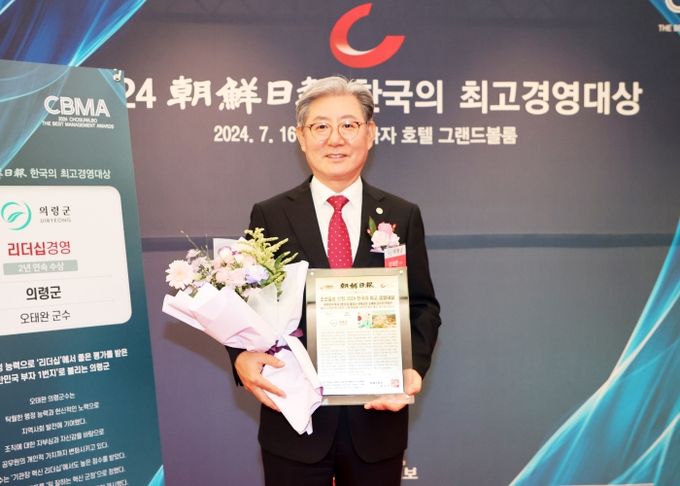 (아름다운교육신문) 경남 의령군은 16일 서울 더플라자호텔에서 개최한 ‘2024 한국의 최고경영대상’ 시상식에서 '리더십경영' 부문 대상을 수상했다.