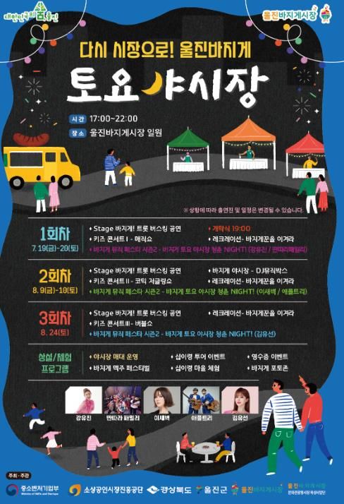 특히, MZ세대를 중심으로 하는 새로운 소비문화가 지속적으로 확산되는 가운데, 이번 행사는 MZ고객층에게 토속적인 5일장 풍경을 간직한 울진바지게시장의 아날로그 감성에 새로운 트렌드를 접목한 신선한 문화공간의 장을 마련하는 계기가 될 것이다.