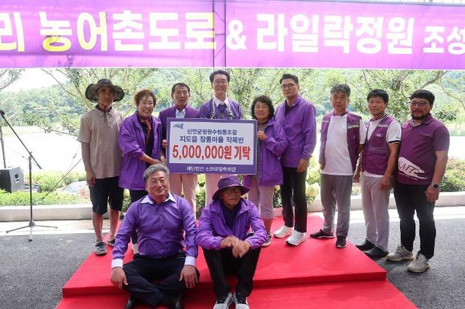 (아름다운교육신문) 신안군정원수사회적협동조합 지도읍 장동마을 작목반 임원과 회원들은 지난 15일 지도 장동에서 봉리 농어촌 도로·라일락 정원 준공식에서 (재)신안군장학재단에 장학기금 500만 원을 전달했다.