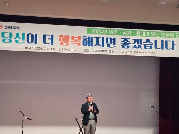 (아름다운교육신문) 양구교육지원청은 16일 양구문화복지센터에서 관내 교직원 100여 명을 대상으로 위로․공감․환대가 있는 인문학 연수 ‘당신이 더 행복해지면 좋겠습니다’를 열었다.