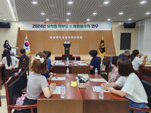 (아름다운교육신문) 경상북도의성교육지원청은 7월 17일 의성교육지원청 3층 대회의실에서 관내 공 ‧ 사립유치원 학부모 및 자원봉사자 30여 명을 대상으로 2024년 유치원 학부모 및 자원봉사자 연수회를 실시했다.