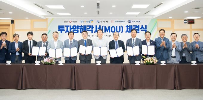 체결식에는 유재정 ㈜신보 대표이사, 유태삼 ㈜제노코 대표이사, 이병남 알에프코어㈜ 부사장, 임현규 ㈜빅텍 본부장, 김장호 구미시장, 박교상 시의회 의장, 한화시스템 양태호 구미사업장장 및 관계기관 임직원 등 15여 명이 참석했다.