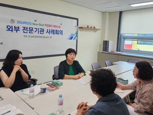 (아름다운교육신문) 김천교육지원청 Wee센터는 7월 17일 오전, 학업중단 예방사업 외부 전문기관 4곳과 사례회의를 실시했다.