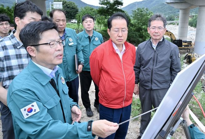 (아름다운교육신문) 홍준표 대구광역시장은 7월 17일 오후, 군위군 부계면 대율리 지방하천 수해 복구현장을 방문했다.