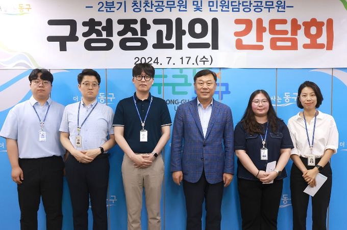 (아름다운교육신문) 울산 동구는 7월 17일 오후 2시 30분 구청장실에서 민원담당공무원 등 8명이 참석한 가운데, ‘2분기 칭찬공무원 격려’ 및 ‘구청장과 민원담당공무원과의 간담회’를 개최했다.