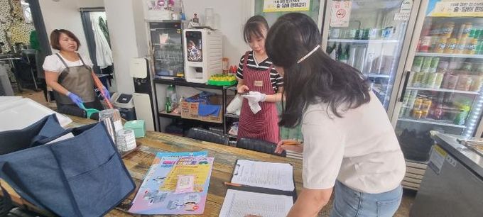 소통전담관리원들은 음식점 운영자 및 조리종사자 대상으로 식재료 취급 요령과 개인위생 수칙 등을 홍보했다.