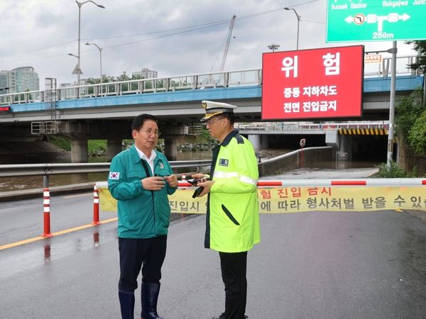 구 관계자는 “수위 단계에 따라 차량 통제 차단기가 자동으로 작동하여 집중 호우에 신속하고 정확한 조치가 가능했다”라며 “마포구는 AI 침수방지 시스템과 함께 재난안전상황실에서 24시간 지하차도 상황과 수위 현황을 모니터링하며 재난 상황에 철저히 대비하겠다”라고 전했다.