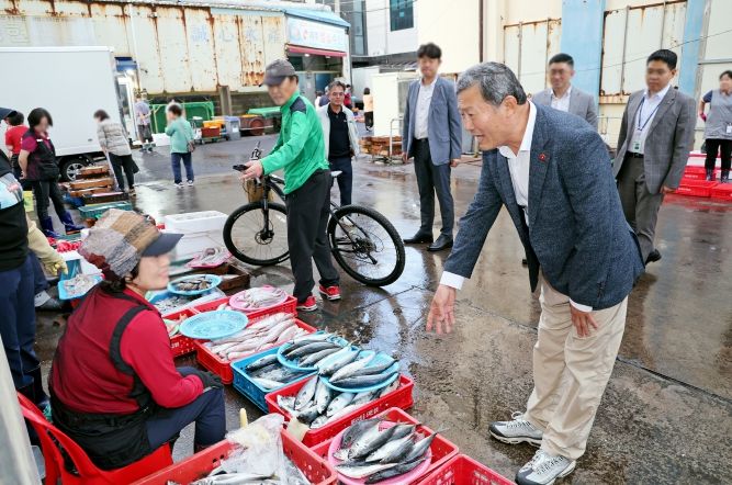 김 시장은 농수축산국장, 해양수산과장 등 관계 공무원과 건입동에 위치한 제주시 수협 위판장을 방문했다.