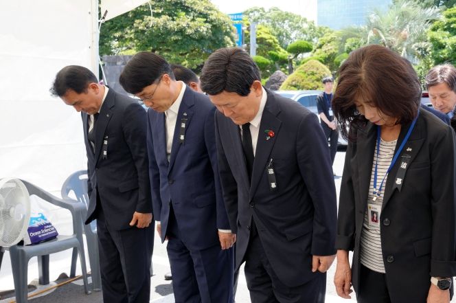 (아름다운교육신문) 제주특별자치도교육청은 고(故) 서이초 순직 교사 1주기를 맞아 도교육청 별관 앞에 마련한 추모 공간을 찾아 헌화하며, 애도의 뜻을 전했다. 또한 교육지원청 교육장 및 도교육청 실·국과장들도 함께하여 추모의 시간을 가졌다.