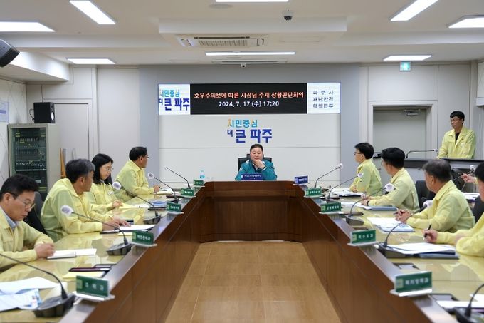 잠시 호우 소강상태에 따라 오후 1시 호우경보 해제됐으나, 다시금 오후 4시 10분 호우주의보가 발효됨에 따라 파주시청 재난안전대책본부는 행정안전국장, 집중호우 대처 주요부서 부서장, 읍면동장을 즉각 소집해, 김경일 시장 주재로 집중호우에 따른 상황판단회의를 개최했다.