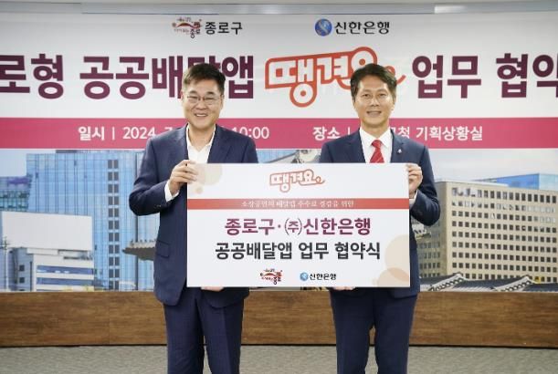 구는 7월 17일 신한은행과 '종로형 공공배달앱 ‘땡겨요’ 업무협약'을 맺고 소상공인 지원과 지역경제 활성화를 위해 협력할 것을 약속했다.