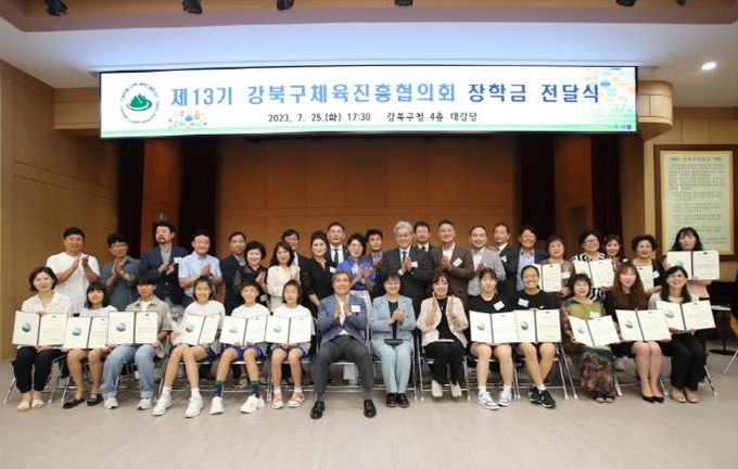강북구 체육진흥협의회는 스포츠 분야에서 뛰어난 재능과 자질을 보이는 유·청소년을 엘리트 체육인으로 육성하기 위해 2011년부터 이사들이 회비를 모아 장학금을 지원하고 있다. 지난 13년간 총 154명에게 2억 530만원의 장학금을 전달했으며, 올해 조성한 장학금 규모는 총 2,250만원이다.