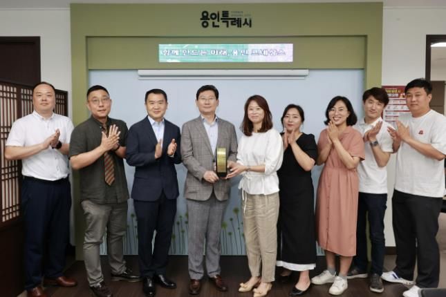 (아름다운교육신문) 이상일 용인특례시장이 17일 처인구 고림진덕지구 입주예정자들에게 감사패를 받았다.