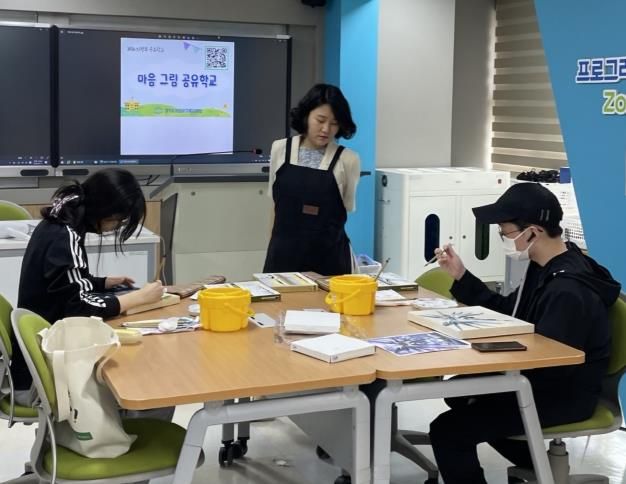‘마음그림 공유학교’에서는 지역의 예술 전문강사와 함께 매주 토요일 심리·정서적 어려움을 겪는 중·고등학교 학생을 대상으로 미술 치유 프로그램이 54차시 진행된다.