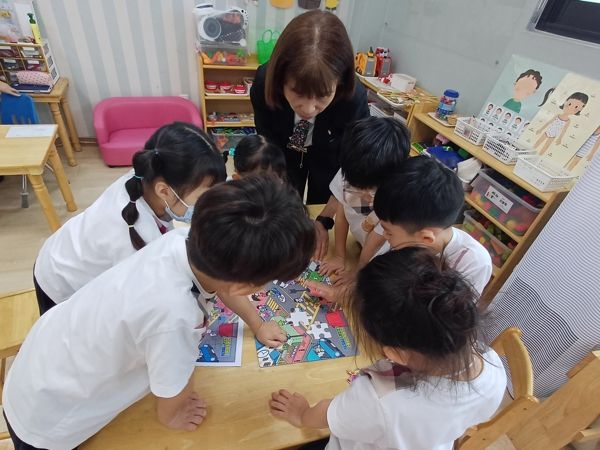 그림 퍼즐을 맞추면서 익히는 교통안전 현장 교육은 7월 12일부터 19일까지 어린이집∙유치원∙경로당을 직접 방문하여 진행된다.