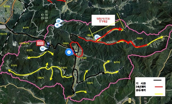 이번 추경을 통해 대현2리 농어촌도로 구간에 4.3㎞의 상수관이 추가로 매설될 예정이다.