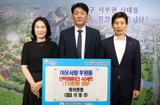 이태훈 달서구청장은 “지역사회 기부문화 확산을 위한 하이앤팜의 사회공헌활동에 감사드리며, 후원품은 어려운 이웃을 위해 소중하게 전달하겠다. ”고 전했다.