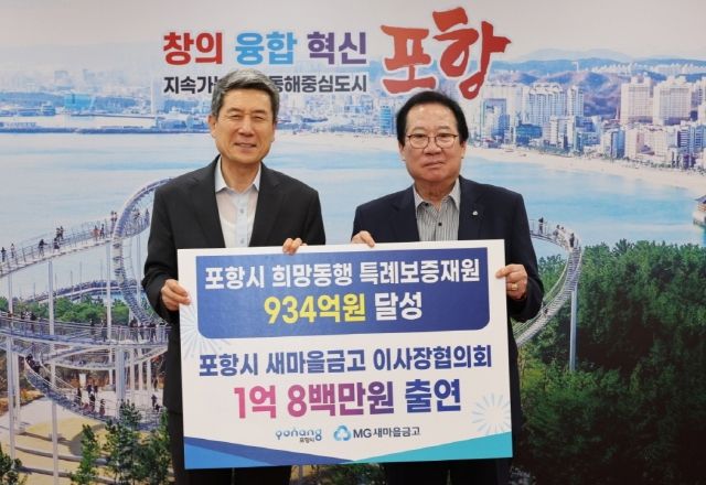 포항시 새마을금고 이사장협의회에서 특례보증재원을 추가로 출연함에 따라 포항시는 지금까지 민관협력 매칭 사업을 통해 시행된 희망동행 914억 특례 보증에 이어 총 935억 6천만 원의 특례보증재원을 달성하게 됐다.