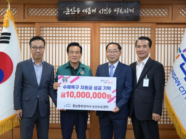 (아름다운교육신문) K-water 충남중부권지사 논산수도센터는 17일 집중호우 피해로 특별재난지역으로 선포된 논산시를 방문해 수재의연금 1천만원을 전달했다.