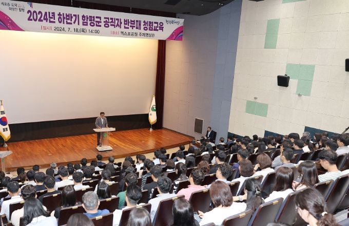 (아름다운교육신문) 전남 함평군이 18일 엑스포공원 주제영상관에서 하반기 승진자와 신규자를 포함한 공직자 200여명을 대상으로 반부패‧청렴교육을 실시했다.