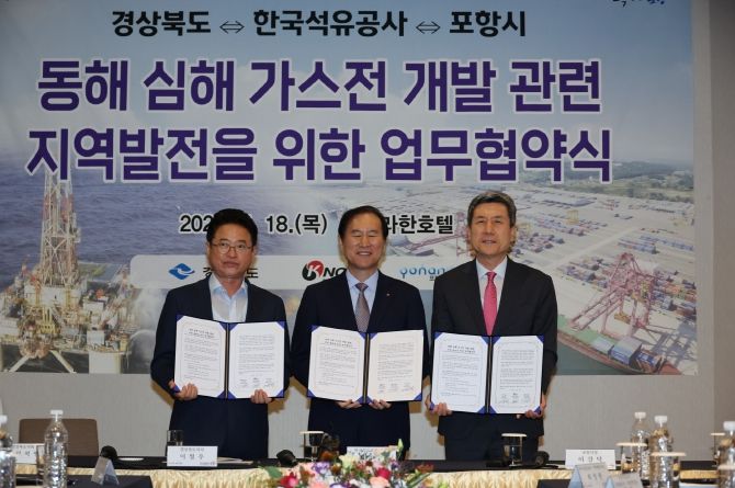 협약서에는 동해 심해 가스전 개발과 관련해 한국석유공사 현장사무소를 포항에 설치하고, 지역 항만을 활용한 기자재 보급기지 조성과 지역 신산업 육성을 위한 시범사업 운영 등이 포함돼 있다.
