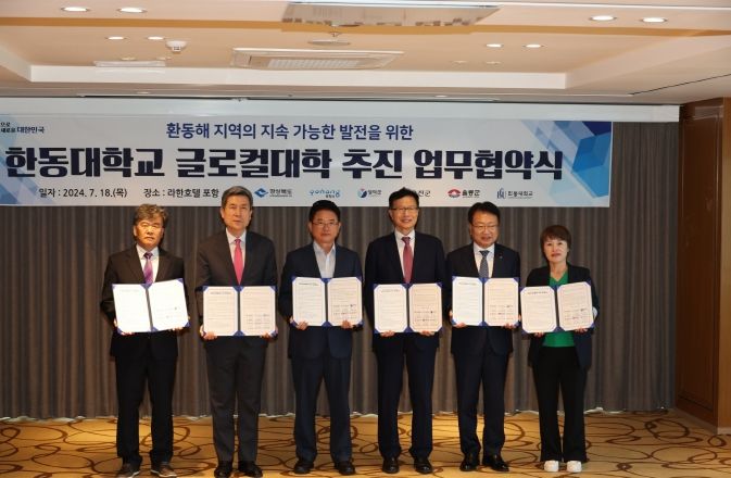 경북도 주관으로 열린 이날 협약식은 글로컬 대학을 기반으로 환동해 지역의 현안을 공동으로 해결하고, 상호협력 체계 구축을 통해 지역 주민의 삶의 질을 향상시키기 위해 마련됐으며, 포항시, 영덕군, 울진군, 울릉군, 한동대가 참여했다.