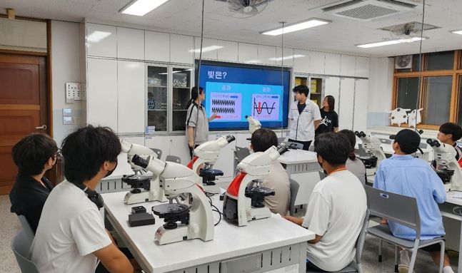 이번 캠프는 이공계 진학 및 진로 탐색 프로그램으로 ▶편광 현미경 체험 및 활용 연구 ▶초고속 카메라 체험 및 활용 ▶전자 현미경 체험 ▶마이크로웨이브 플라즈마 원자 방출 분광기 체험 ▶천체 망원경 체험 및 AR/VR 체험 등 다양한 과정을 진행했다.