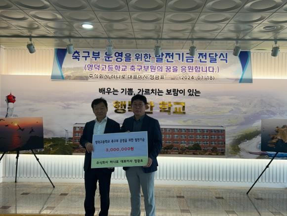 (아름다운교육신문) 영덕고등학교는 7월 18일 본교 축구부 운영을 위하여 “발전 기금 전달식”을 개최했다고 밝혔다.