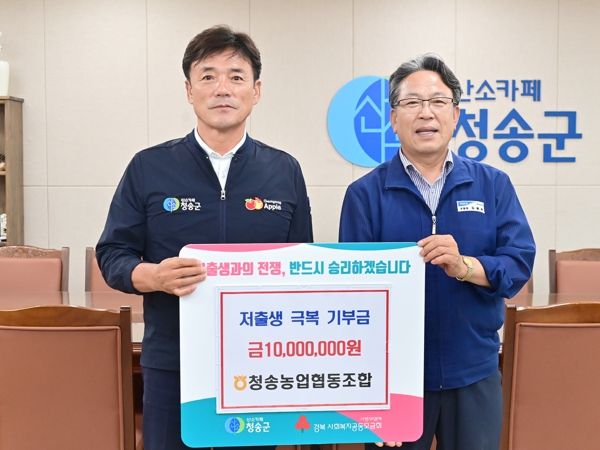 김종두 청송농업협동조합장은 “초고령화 사회에서 저출생이 사회적 문제로 대두되고 있는 만큼 이번에 기탁한 기부금이 저출생 문제를 극복하는 데에 조금이나마 도움이 됐으면 한다.”라고 말했다.