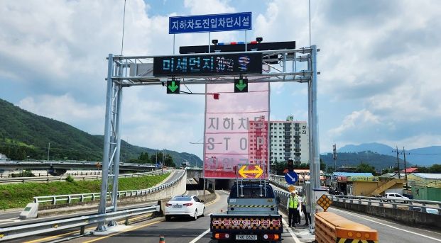 차단시설은 지하차도 진입 전 양방향에 설치되어 수위계에서 15cm 이상의 수위가 감지됐을 경우 자동으로 싸이렌 경보음과 함께 전광판에 ‘지하차도 진입 금지’ 문구 차단막이 내려오는 방식이다.